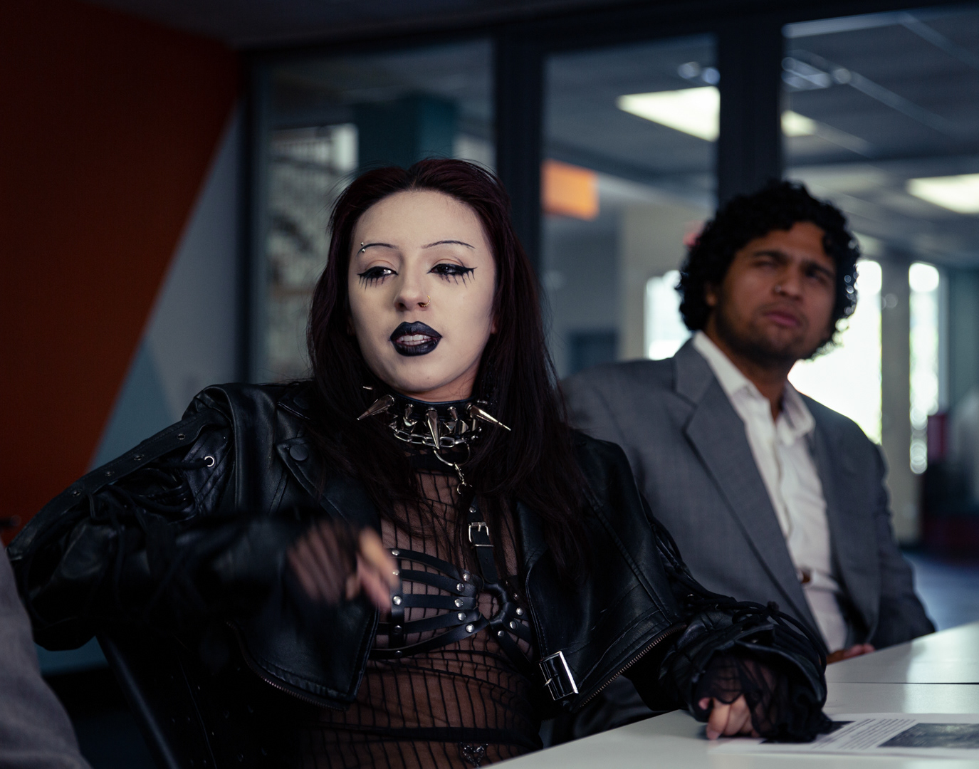 A clash between corporate culture and alternative fashion. A visual representation of the power of raw, fresh perspectives in a robotic and apathetic way of thinking. One can find happiness in breaking norms and thriving in absurdity. Sometimes you need a little chaos to see clearly.